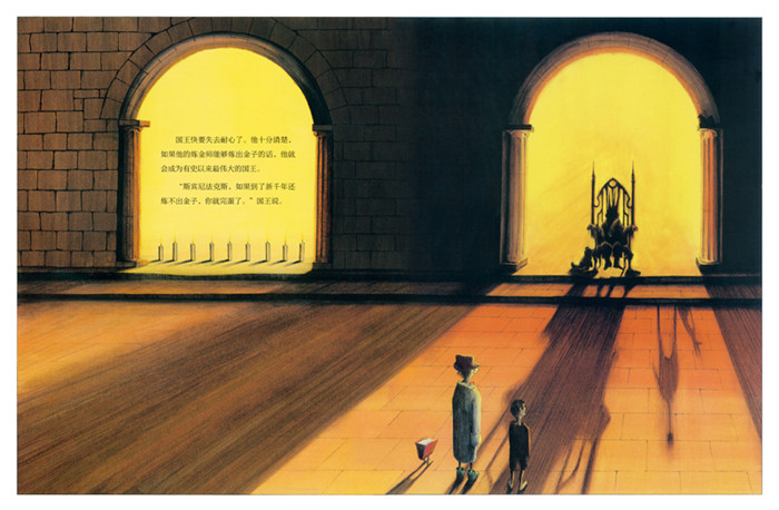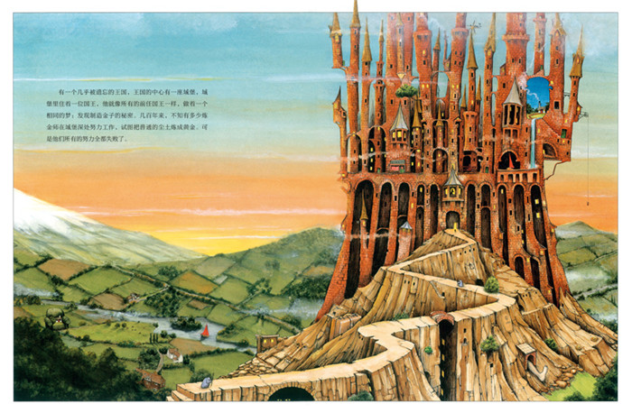在一个遥远的国度,历代国王都想找到黄金的秘密,几百年来,一代又一代炼金术师都想炼出黄金。有一位皇家炼金术师带着他的学徒,一定要炼出黄金不可。他的学徒认为为什么要把黄金看得这么重要?可他硬要坚持到底,搜刮了国度内所有的金 器,最终他的炼金机器把几乎所有的黄金变成蒸汽全部散发到空气中,他自己也在炉火里丢掉了性命。他的学徒不再炼金,把最后一点黄金做成了美丽的向日葵,送给了国王,国王也终于明白,黄金固然珍贵,但看着他美丽的国度,比黄金更重要的 东西更多更多。