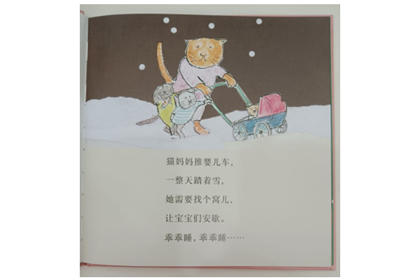 这是一首轻快的摇篮曲,一天结束时,每个人都很疲惫,猫妈妈和她的小猫、一家子熊、一条鱼、一头鹅、一只青蛙,甚至是月亮上的人……每个人都很疲倦,每个人都在低声说着“嘘——乖乖睡”。在书的后半部分,大家依偎在一起,躺在舒适的地方熟睡,这提醒读者,睡觉时间到了,请把头靠在枕头上:明天又是新的一天。 现在,可以去睡觉了。嘘——乖乖睡。