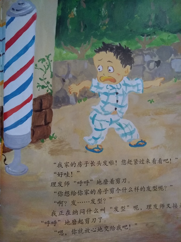 早上起来,小男孩看到家里的房子竟然长头发了!于是赶快跑到理发的老爷爷那里。“爷爷,我家房子长头发了。你快过去看看吧!”咔嚓咔嚓,老爷爷把玩着剪刀说,“想要个什么发型呢?”唉?“放心吧,都包在我身上啦!”老爷爷看了看屋顶的头发,给某处打了个电话……一场头发大作战就这样开始啦!天马行空的想象,童真快乐的语言,准会让孩子们乐个不停。