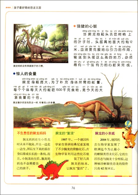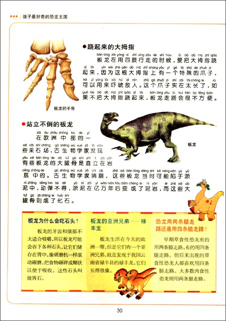 《中国儿童成长必读书:孩子最好奇的恐龙王国》将通过翔实的资料、精彩的图片将大家带回壮观的史前时代,向大家全面展示恐龙王国。快来与这些神奇的生物来个亲密大接触吧!