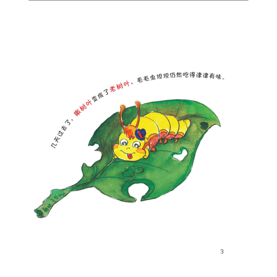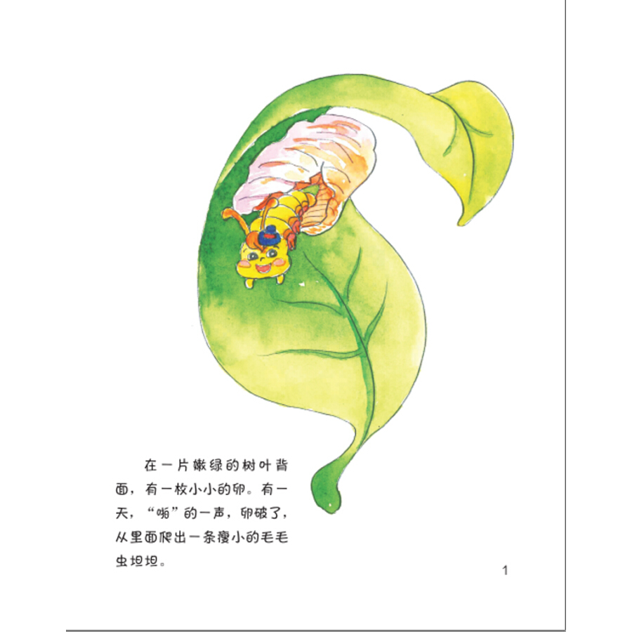 毛毛虫坦坦从一枚卵里爬了出来,它休息了一会就吃起了身边的嫩树叶、嫩茎皮,它沿着枝头爬呀爬,又发现了花蕾和幼果。毛毛虫坦坦碰到了好多朋友,有吃菜叶的、有吃水稻叶子的,还有吃蚜虫的。毛毛虫坦坦一天天地长大了,它从蛹变成了一只漂亮的蝴蝶,它们吃花蜜、吃无花果汁液、吃葡萄,飞来飞去,非常开心。