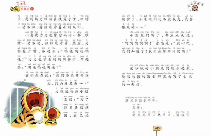 《小老虎历险记》为著名童话作家汤素兰为小读者倾情打造动物历险童话,讲述了小老虎和妈妈从动物园逃出来、返回大自然的过程中遇到的一系列冒险故事。内容包含了友谊、亲情、勇气、亲近自然、爱护动物等正能量主题。