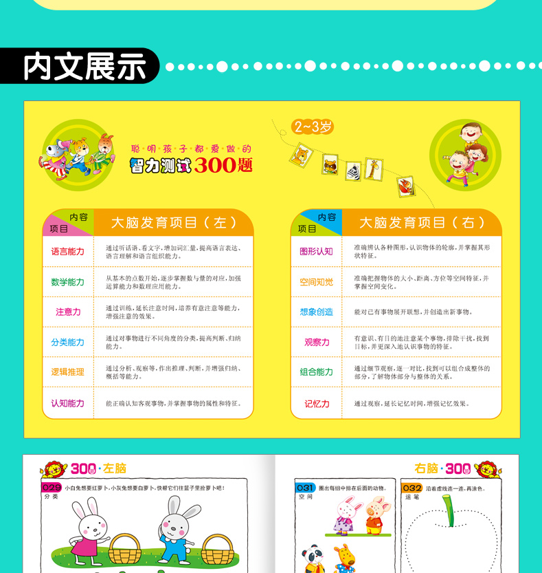 本书实用超值,是最权威、最经典的左右脑开发题库;300道测试,迅速提升孩子的智力;原版销量突破900000册。