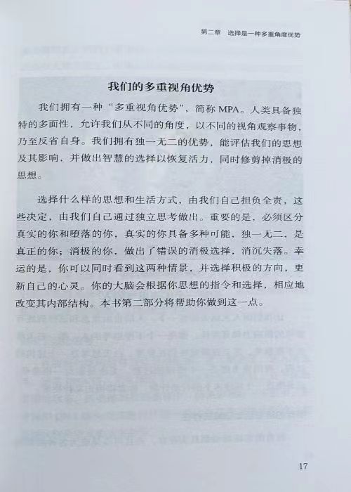 在这本书中,丽芙博士为您提供了切换思维,改变人生的秘诀。综合多年对大脑科学在深入研究,她告诉我们,每个人都有无限潜力,改变消极思想和习惯,远离疾病、抑郁、颓废和不健康在生活方式。丽芙博士在2天切换思维计划,将引导你反思消极思维,重新规划生活目标,把消极的你,转变成一个更快乐,更健康,更积极的你。我们的自主选择,决定了我们的生与死,如果我们的大脑被以往糟糕的环境、事情和决定毒害,我们就不能做出有益、有效决择,要做的选择,就是断然改正我们的思维方式。如果你发现有一个开关,能切换你的思维,改变你的人生,使你更快乐、更健康,使你精力充沛,思维活跃,你会怎样做?在这本书,你将学会如何找到并打开这个开关。你的思维就是这个开关。你能改变你的大脑和身体,发挥你与生俱来在神奇能力,改变自己的人生。