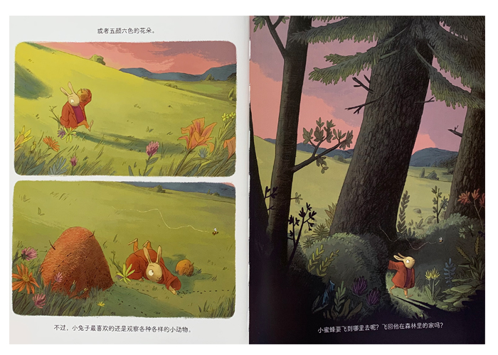 《森林里的光》是一本宁静的故事绘本,很适合在睡前阅读,能帮助小朋友克服对黑暗的恐惧,领略黑暗中的美。 傍晚时分,小兔子走进森林,被突如其来黑暗吓了一下。幸运的是,他在森林中央找到了一片光!光噼啪作响,暖暖的,还可以被揉捏成一个球带走。有了光,小兔子不再害怕了,但其他动物看到,也想要分享他的光。小兔子和所有见到的动物分享,此外,他不仅打破了偏见,而且了解了随着光消失的夜晚森林的美丽。
