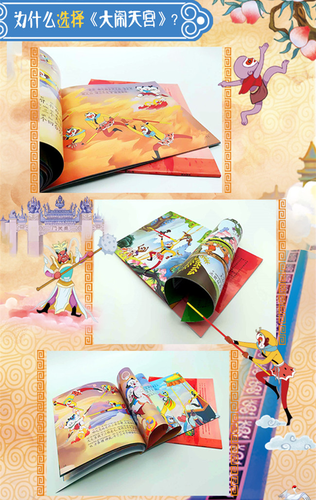 《大闹天宫》含5册:《龙宫借宝》《初上天庭》《齐天大圣》《蟠桃盛会》《大闹天宫》,以神话形式,通过孙悟空闹龙宫、反天庭的故事,比较集中而突出地表现了主角孙悟空的传奇经历。家长和孩子通过阅读纸上动画片,可以一起重温儿时的经典,感受民族文化的魅力,领悟做人做事的道理。