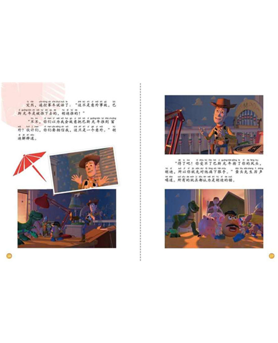 这是一本图画故事书,加注拼音。《玩具总动员》讲述了安迪和玩具们的故事。安迪最爱的一直都是牛仔玩偶胡迪,可一天,安迪带回了一个新玩具——太空战警巴斯光年。巴斯光年长相新奇,功能先进,令安迪爱不释手,威胁到了胡迪的地位。胡迪千方百计要赶走巴斯,一不小心二人一起掉出了房间窗口外,邻居的恶狗在狂吠,邻居的小孩是一个玩具虐待狂,胡迪巴斯能不能化敌为友,消灾解难?