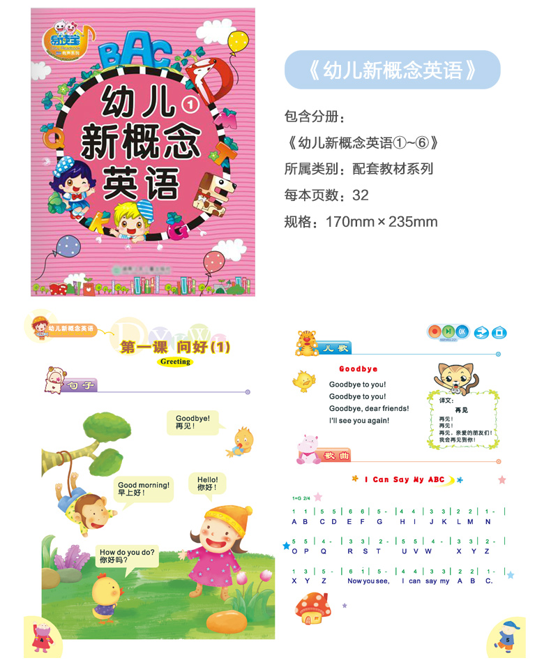 内容简介: 《幼儿新概念英语》沿用了《新概念英语》的教学思路,充分考虑了幼儿的认知特点,按幼儿的生活场景进行编排,对单词与句型进行了分类,螺旋推进。 教学按每周一课的进度安排,内容由单词学习、句型学习、儿歌学习、歌曲学习四个模块构成。 幼儿可以在句子中巩固学习过的单词,通过替换练习内化英语的句型模块;幼儿可以伴随着儿歌欢快的节奏做形体动作,在活动中学习英语;韵律的儿歌和优美的歌曲还可以让幼儿充分享受英语学习的乐趣。