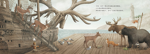 《午夜园丁》绘者携手知名童书作家、得奖记者共同打造的成长之书! 一只好奇的狐狸、一群勇敢的鸽子和几头饥饿的鹿,搭乘鹿角舟去寻找传说中的小岛。 当风浪到来、危险降临,他们还能坚持最初的梦想吗?