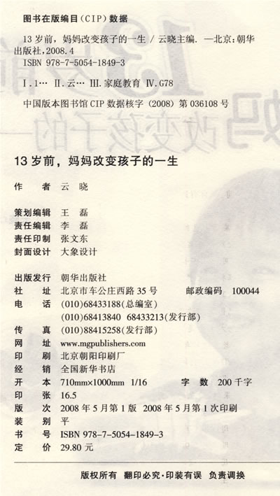 《13岁前,妈妈改变孩子一生》是你养育孩子时汲取力量的源泉,它将帮助你塑造和改变孩子的一生!
