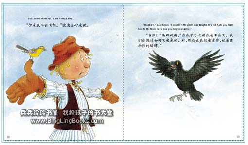 波迪学飞行是整个认知故事的开始。在这里,我们第一次认识波迪,其他主人公海鸥、乌鸦、鹩鸽鸟也一一出场,小家伙们的冒险正式开始,“稻草人”、“季节”等全新词语,也由此走进了孩子们的世界。