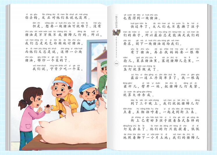 《一起长大的玩具》记述了作者与小时候玩的三种玩具(猪蹄儿灯、陀螺、兔儿爷)之间的故事。作者童年时在玩这三种玩具的过程中,不仅获得了无限乐趣,还锻炼了动手的能力,甚至懂得了一些人生道理。这些玩具承载了作者的童年回忆,至今令作者难以忘怀。