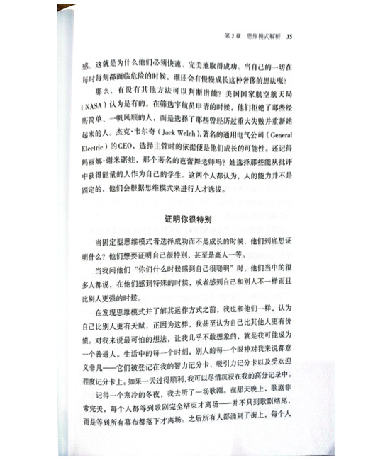 在本书中,作者深刻剖析了人类两种思维模式:即固定型与成长型思维模式,指出不同的思维模式会创造出不同的世界。决定我们是否成功的,不是能力和天赋,而是在固定型思维模式和成长型思维模式当中你选择了哪一种。成长型思维模式是一种健康、积极、不断进取的思维模式,它不推崇智商或成功本身,而将关注点放在持续不断的努力、不畏挫折的态度上。作者通过体育、商业、两性关系和家庭教育等领域的大量例证,帮助读者认识什么是成长型思维模式,并为读者确立正确的思维模式提供了切实可行的途径。