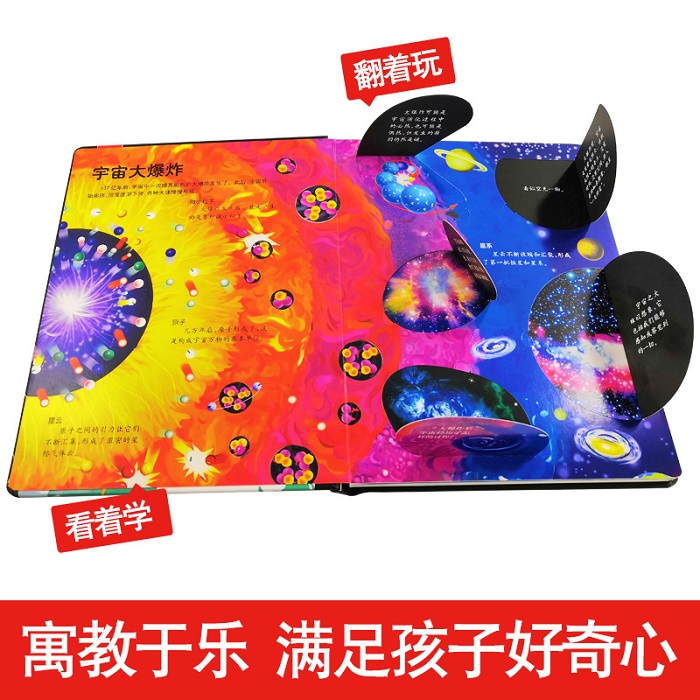 精装工艺美观大方,画面唯美,向孩子们讲述了宇宙大爆炸,展示宇宙中的星系、太阳、地球和航天工程。