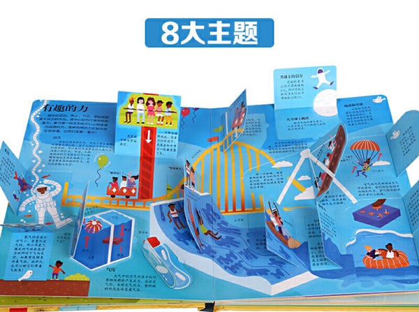 以翻页、大折页的有趣形式向孩子们介绍了一些生活中常见的物理学知识,例如什么是摩擦力?什么是作用力和反作用力?能量之间是如何转化的?乐器发声有什么特点?回声是怎么回事?什么是光的反射和折射?……精美的插图,有趣的翻页,独特的视角,将各种奇妙的物理学知识生动地解读给孩子,让孩子边学边玩,不知不觉中学会思考,激发他们的科学探索精神!