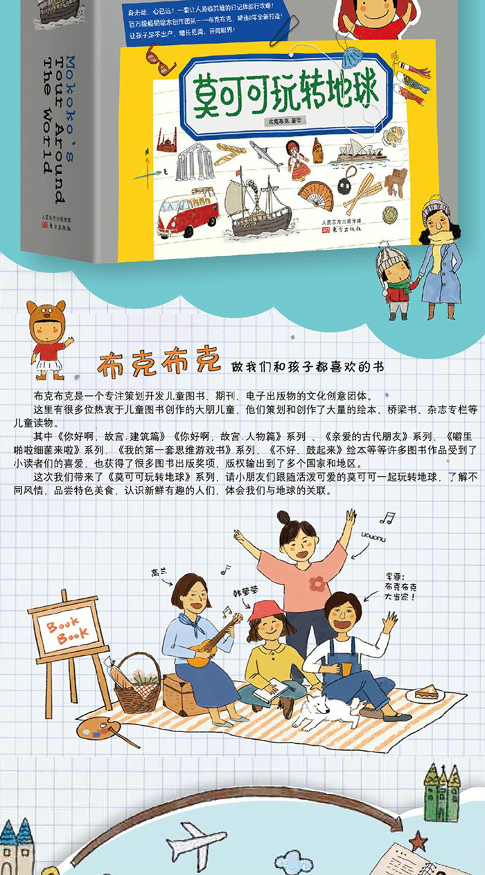 莫可可跟随爸爸妈妈去国外旅行,她把自己一路的见闻画成了旅行日记,不仅有每个国家的自然风貌、风土人情,还有旅途中遇到的人,以及发生的小故事。 现在就让孩子跟随莫可可的脚步,在纸页间触摸城市的历史,沿着大街小巷去细细品味城市的人文积淀吧。旅行目的地分别为:日本、法国、芬兰、土耳其、马来西亚、西班牙、尼泊尔、澳大利亚。