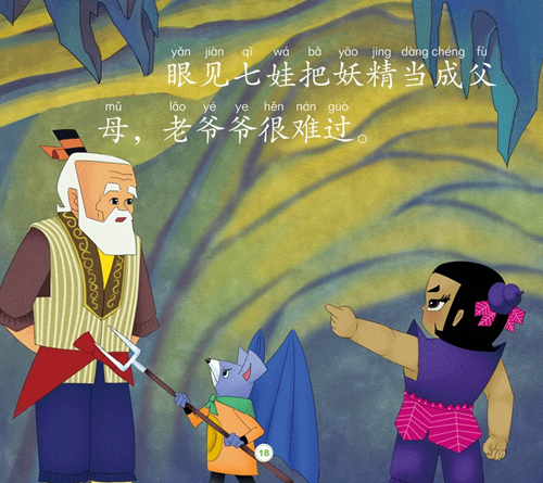这一集,四娃和五娃被妖精用烈酒灌醉,老爷爷被 扔下了悬崖,剩下的两个葫芦和恢复视力的二娃都被抓 入妖洞。紫葫芦受魔汁迷惑,认贼为父;蓝葫芦及时变 成六娃,找到了被困住的哥哥们……老爷爷还活着吗? 葫莒娃们得救了吗?欲知详情,就赶快翻开书页,一探 究竟吧!