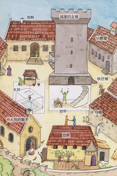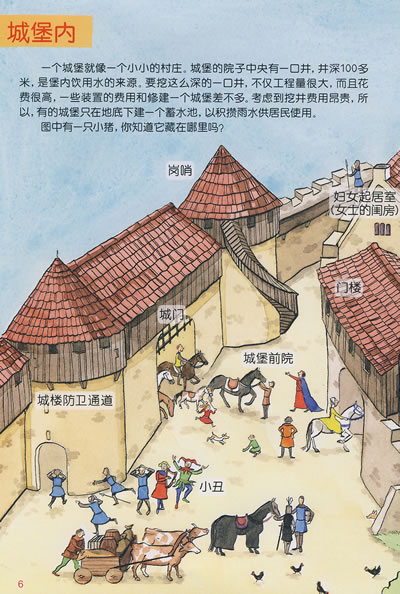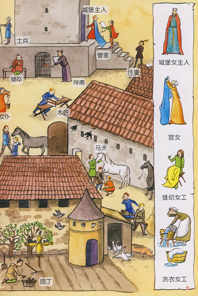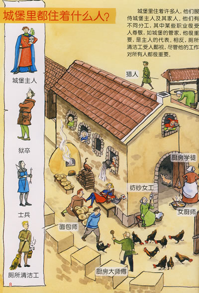 描述了城堡的构造和相关的设施、城堡的修建和历史;骑士的训练、他们的日常生活、衣着服饰以及骑士精神