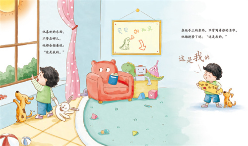贝贝是个5岁的小男孩,他最喜欢说的一句话是:“这是我的”。不管是天上的月亮,还是小伙伴的玩具,他都要据为己有。 他的东西,不管怎样,都不会是别人的;而别人的东西,一旦不在别人手上,就自动变成他的。 结果,大家都被他惹生气了,没有人愿意跟他玩了,他很难过。 那么最后,贝贝是怎么做的呢? 画风轻松有趣,内容真实有用。 培养“物权意识”,让孩子喜欢分享,而不是强迫孩子“大方”。 愿每个父母和老师都能读到,也期待父母和老师都能读给孩子听。