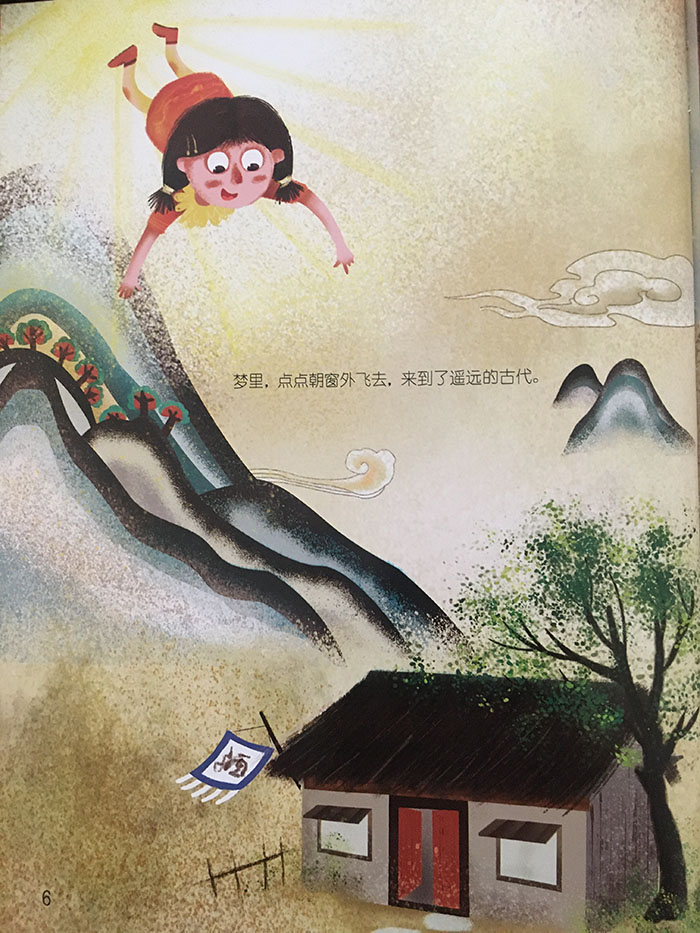 夜晚,窗外吹来丝丝微风。妈妈给点点讲起了故事:“黄鹤楼是江南三大名楼之一,“昔人已乘黄鹤去,此地空余黄鹤楼。黄鹤一去不复返,白云千载空悠悠……”伴随着诗句,点入香甜的梦乡……