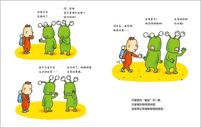 ★ “正常”的定义会因为时代或国家不同而有所差异,没有统一的标准。既然如此,我不如把故事设定在压根没有“正常”这个概念的地方,所以创作了这个地球人小男孩与外星人相遇的故事。