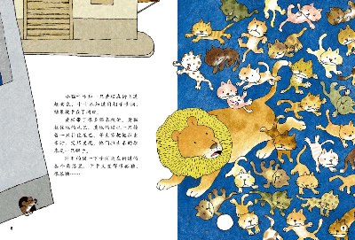 黄猫带了很多猫来救他。黄猫拉住他的尾巴,其他的猫也一只接着一只拉住尾巴。等大家把他拉出来时,突然发现,他们拉出来的原来是一只狮子。