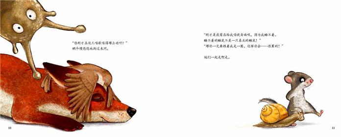 动物们依偎在一起酣睡,只有谁还醒着呢?如果孩子们在听这个故事的时候睡着了,没关系,也许他们会梦见那只眼睛炯炯有神、鼻子粉嫩湿润的小睡鼠呢。