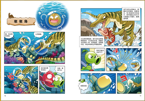 植物们在勘探可燃冰矿藏时,意外发现了海洋深处竟然生活着恐龙。这些恐龙头戴空气泡泡,像鱼一样在海底游动,生活在一座被巨大气泡笼罩的岛上。 植物们被重爪龙捕获,结果却救了重爪龙首领的命,获得重爪龙一族的信任。雷利诺龙“雷电”挟持豌豆射手,放走了被关押的重爪龙“小飞”,就此揭开了泡泡岛的秘密。原来,海底泡泡岛和恐龙的存在全部依赖于一种会冒泡的树,而这种树现在濒临死亡,泡泡岛和恐龙面临灭顶之灾。 为了争夺有限的空气资源,爆诞龙一族对重爪龙发起攻击,恐龙们自相残杀,伤亡惨重。此时,小飞终于获得首领的信任,准备带领所有恐龙离开家园,前往传说中的梦幻大陆。 梦幻大陆真的存在吗?恐龙们能否重获生机?本书将漫画故事与恐龙知识相结合,让你在轻松阅读中了解恐龙这一神奇生物。赶快翻开书,和植物、恐龙一起,开始精彩的海底大冒险吧!