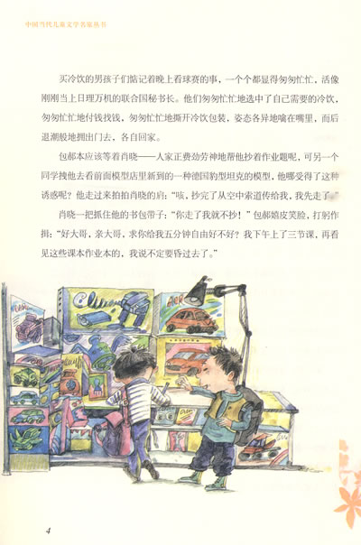 肖晓捡到那笔巨款真是个意外。那装钱的皮包简直就是从天上掉下来的,不偏不倚砸在他面前,想不看见它都不行。肖晓记得上二年级的时候,为争取一个好的表现加入少先队,他天天走路都是埋着脑袋,眼睛上恨不能架上两片放大镜,好把路上有可能捡到的每一分硬币都看得清清楚楚。那一学期他总共捡到一毛七分钱,一枚一毛的,一枚五分的,一枚二分的。后来包郝说,二分的硬币现在可不容易看见了,他要收集了攒起来,将来到美国古玩市场去拍卖。他硬是用一枚一元钱的硬币换下了肖晓那枚二分的。所以肖晓捡到的钱一共是一元一毛五分。肖晓后来在第二批加入了少先队。也不知道这跟他捡到一元一毛五分钱有没有关系,老师没说,肖晓也没问。