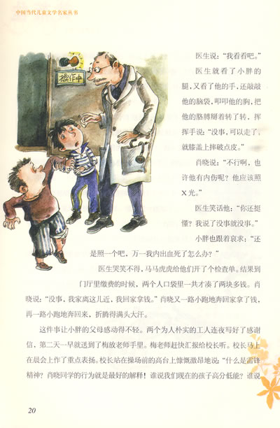 肖晓现在已经是六年级的学生了,个子长到了一米六一,两腿长长的,肩膀平平的,走起路来两眼望天,大步流星,很有那么点男子汉的气派了。男子汉气派的肖哓根本不屑于在路上捡那么一两分钱交给老师,然后眼巴巴地盼着星期一的班会上老师捎带着表扬他一句两句。再说了,梅放老师这人可不那么好糊弄,谁要是捡一两分钱交给她,她随手拿着往讲台抽屉里一扔,也就是“当啷啷”那么一响,便没了下文。她看都不会正眼看那硬币一下,更别说表扬了。捡几枚硬币算什么好事啊?太小儿科啦!六年级的学生,小学都快毕业了,该想想毕业后考什么学校的大问题啦!