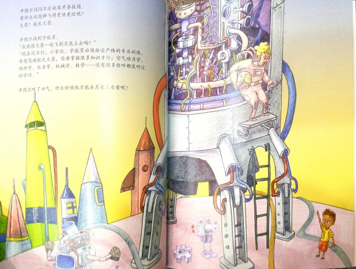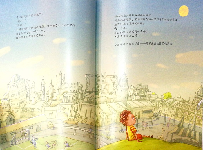 在辛德尔眼里,月亮是那么美。要是能去月亮上看一看该多好!听过辛德尔的想法后让人失望的是,大家都遗憾地摇摇头。月亮太遥远了,通往月亮的旅程又困难又危险,根本不可能实现!但辛德尔没有气馁。他决定造一座月亮塔。一座很高很高的月亮塔!