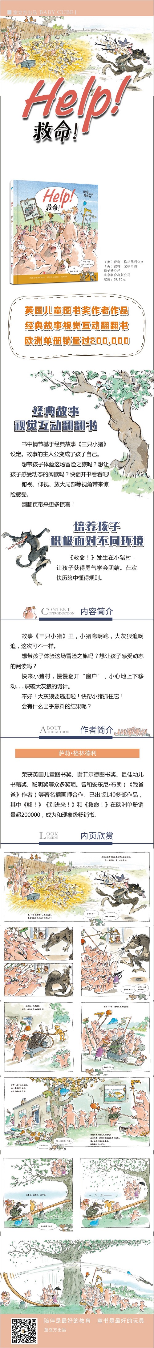 萨莉·格林德利编*的《救命(精)》充满了奇异的创想,在孩子的讲故事时间读起来棒*了。书中的拟声词,给孩子读故事的时候,当我们假装被巨人吓坏了,告诉孩子“嘘——”用惊恐的声音读出书中的拟声词,效果有趣*了。一个关于经典故事的再创作视觉互动版。