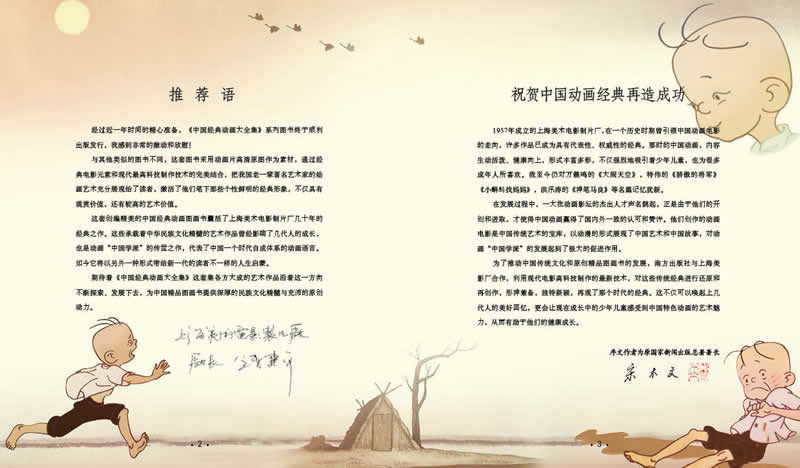 中国经典动画大全集》推动了中国传统文化和中国原创精品图画书的发展.这套书对我国传统经典动画进行还原和再创作,形神兼备、独特新颖,再现了时代的经典,唤起了上几代人的美好回忆,让成长中的少年儿童感受到中国特色动画的艺术魅力.