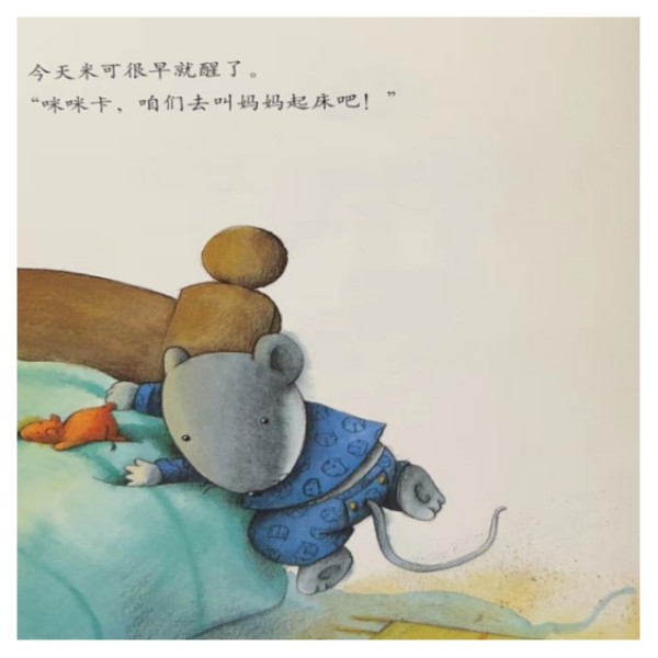和所有小朋友一样,米可很想和妈妈玩,但是妈妈正在睡觉。于是,米可给自己读书、吃了半个大苹果、还自己玩了玩具!他做了很多有趣的事,而且精心准备了一个“惊喜”,等待妈妈醒来。和其他同类型绘本不同的是,故事里孩子不再是单纯抱怨爸爸妈妈怎么不陪我玩,而是展现了爸爸妈妈也要有自己的时间。有时候,自己玩也很有意思!