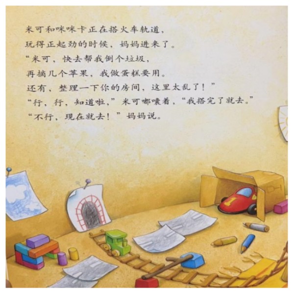 米可正在房间里搭火车,妈妈过来想让米可帮忙倒垃圾和摘苹果。“妈妈怎么总是使唤我做这做那!”米可不高兴了,他决定搬出去住!他用树枝给自己盖了一个房子,可“房子”到处都是破洞,还有蚂蚁爬来爬去!后来,米可找到一个看起来很舒适的工具房,可等到太阳落山,屋子里变得很可怕……后来米可搬回来了吗?他和妈妈和好了吗?