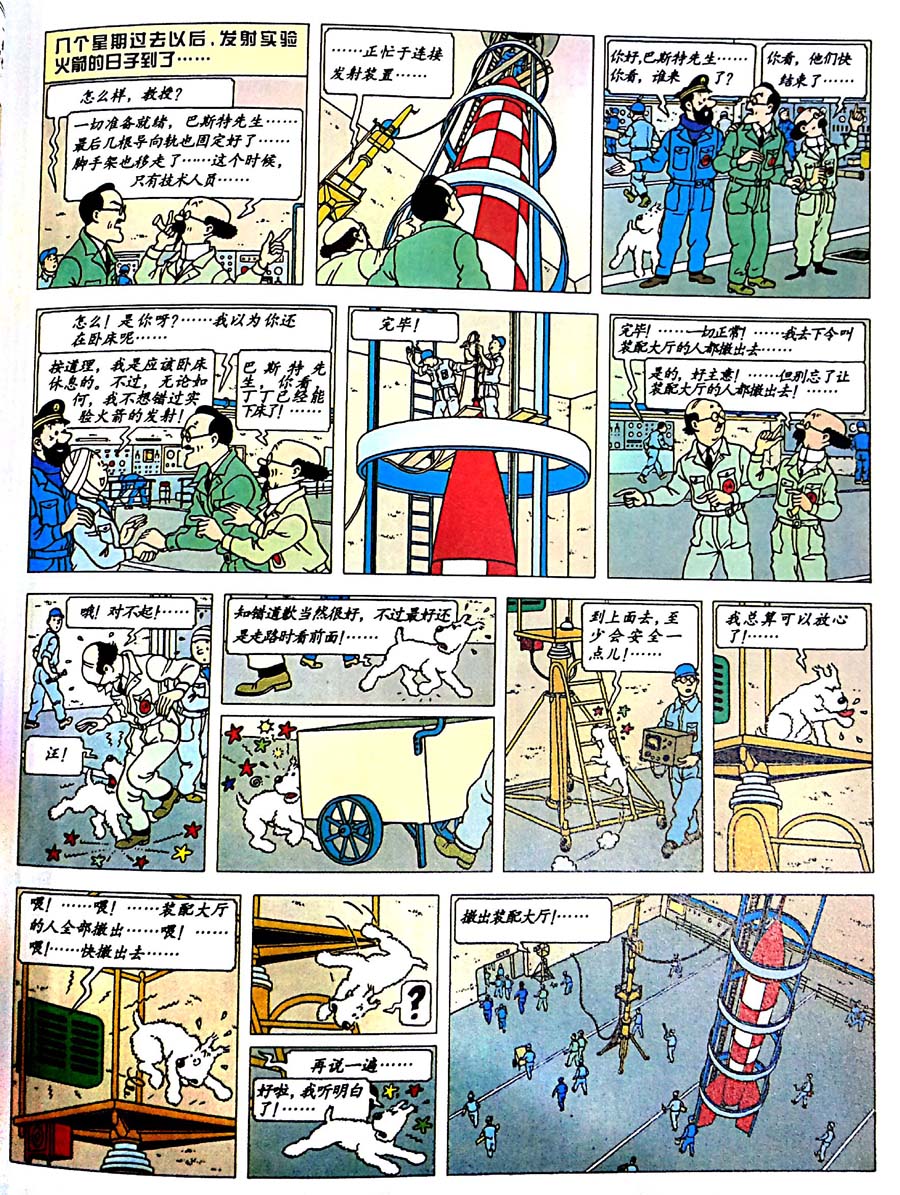 丁丁、白雪和阿道克船长被卡尔库鲁斯教授突然接到处于西尔达维亚的斯波吉原子研究中心。他们惊奇地发现教授正在计划制造一艘太空火箭,而丁丁和他的朋友们也根本没有意识到正等待着他们的危险。尽管有许多灾祸发生,还有活宝汤姆森汤普森两人的“帮忙”,丁丁最后还是踏上了他一生中最危险的探险旅程——甚至也是全人类最危险的探险旅程。