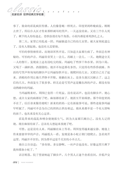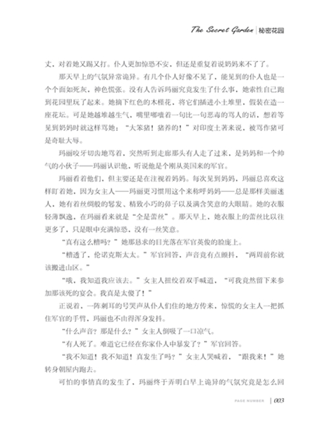 《秘密花园》是一部大自然的魔法书。性情乖戾、长相不讨喜的小女孩玛丽在父母双亡后生活在姑父的大庄园,经由知更鸟的引导,开启了庄园里禁闭已久的、美丽而神秘的花园。从此,玛丽便和农家小子迪康一起,想让花园重获生机。在这个过程中,他们找到了开启快乐的钥匙,自然的魔法治愈了病态的少爷科林,也让玛丽变得阳光健康——他们和花园经历了一次诗意的复活。 现在,快快开启属于你的秘密花园,寻找你隐藏起来的快乐吧!
