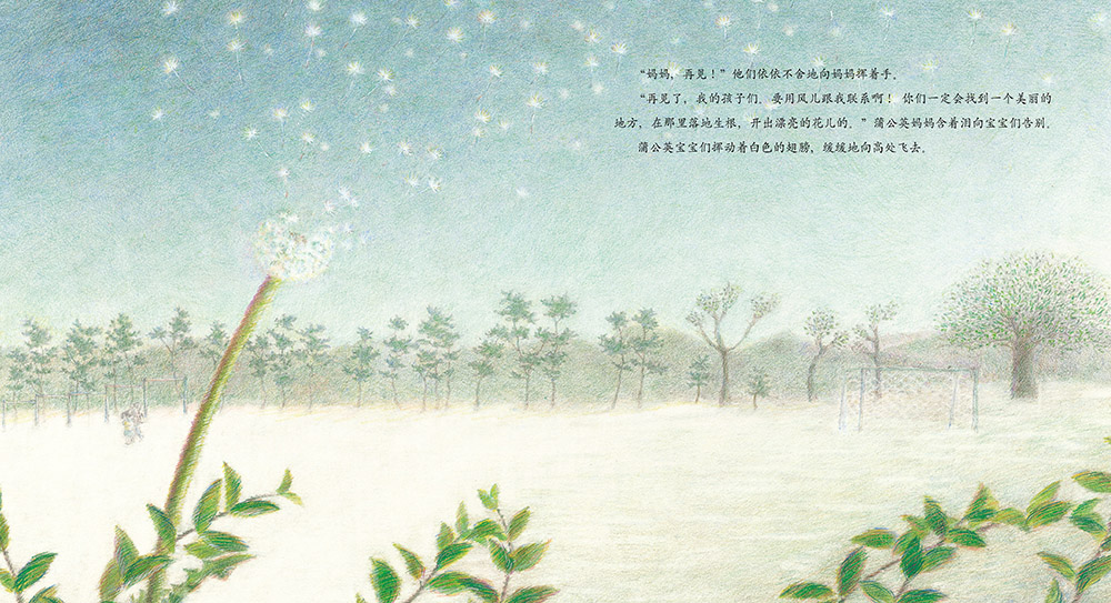 讲述了本应乘着春风飞翔但却紧紧依偎着母亲不舍离开的小蒲公英种子和蒲公英妈妈之间的故事。如果不在该分离的时候分离就没办法开花,结交到朋友,实现自己的梦想。蒲公英妈妈给小蒲公英种子讲了自己在天空悠然飞翔的心情以及远方无比精彩的世界,小蒲公英种子最终能离开妈妈独自飞翔吗?