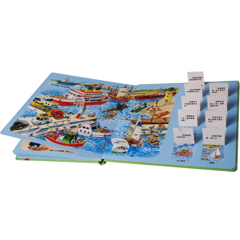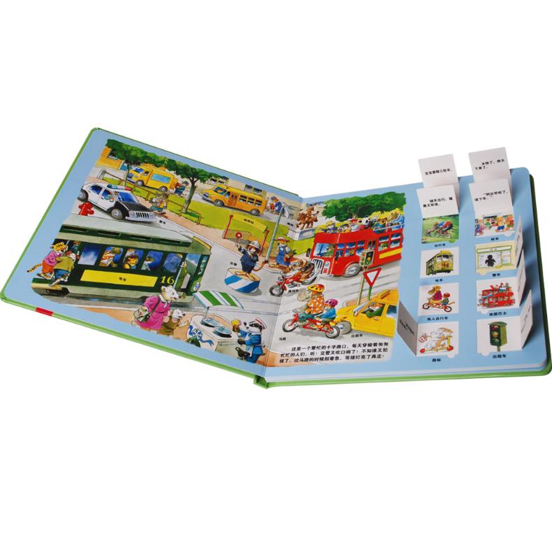 在内容上,它更是以培养孩子的想象思维能力为主,进行“翻翻页”的设计与内容的编排。每册书都将宝宝需要认知的事物整齐的排放在书中大场景的四周。宝宝通过认知完这些单个小事物后,需要在书中的大场景里找找他们都藏在哪儿。这样的阅读形式不但能给孩子带来对事物的基本认知,而且它也无形中培养着孩子的想象力与思维能力。