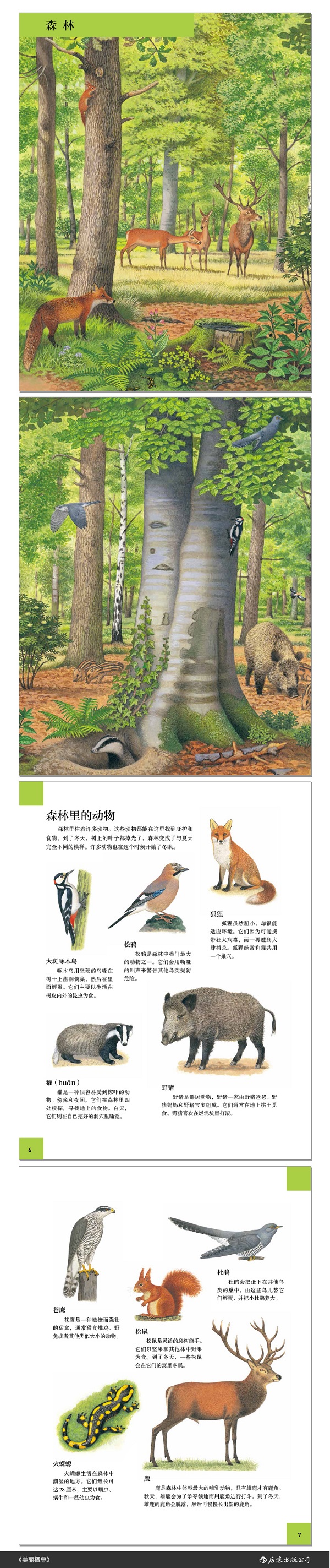 这是一本介绍大自然中各种动物的图书,书内采用图文结合的方式,介绍了十大栖息地中的百余种动物,内容涉及动物们的形态特征、生活习性、生存环境等方方面面。本书涵盖了生存在森林、极地、农庄、海边、草原、热带雨林等各种环境中的典型动物。本书是面向6岁及以上儿童的科普类图书,以动物栖息地作为分类标准,语言通俗精练,大跨页场景图美丽温暖,动物插画惟妙惟肖、细致入微,印刷细节把控严谨,装帧精美,非常适合对动物感兴趣的儿童阅读。