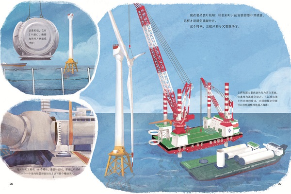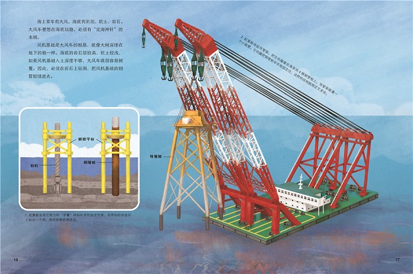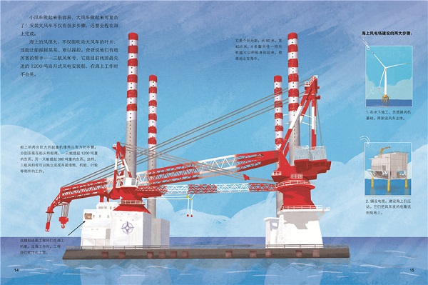 本书以孩子的第一视角在父与子的对话中来到海上大风车的搭建现场,让阅读更加生动,科普知识更加直观。本书介绍了大风车的发电原理、机械构造和种类等科学知识,再现了从风车基础到各结构组件的安装,再到电能输送的全过程,让孩子跟随转动的大风车,了解海上风电利用的科学知识。