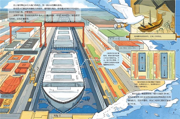 本书从“造船先造船坞”引入,详细地介绍了巨型邮轮和大型船坞的建设过程。本书通过这样一段科技之旅,让孩子们既产生对中国造船工业飞速发展的自豪之情,又能体会到千千万万劳动者的艰辛劳动与付出。 本书通过易于小朋友理解和接受的语言、更有视觉冲击的全景图、版式灵活的对应趣味知识,带领小读者进入丰富多彩、仿佛实境的演练场,满足孩子的视觉需求,吸引孩子的阅读兴趣,激发孩子的探索欲望。