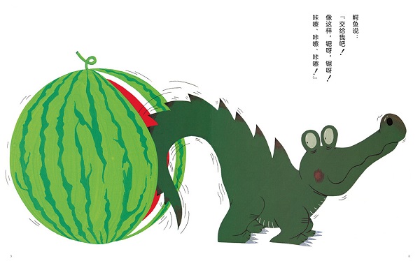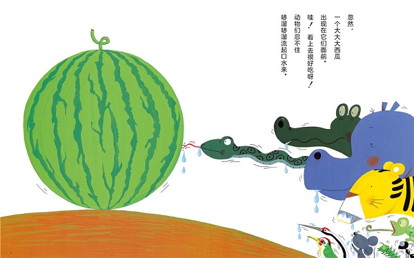 给在幼儿园的6岁的大女儿了这本书。这是一个关于村庄里动物们怎样吃一个西瓜的故事。故事里简单、重复又有趣的元素,即使小孩子也可以享受。每只小动物吃了西瓜以后,留在西瓜上的形状和动物嘴巴的形状也值得一看,非常有趣。 ——日本兵库县者(女儿 6岁) 每只动物吃西瓜的声音很有趣,儿子也很喜欢这些声音念出来的效果,那段时间对他的影响也很让人吃惊,很有趣。 ——日本东京都者(儿子4岁) 这是一本非常可爱的绘本,各种各样的动物都在吃西瓜,而且留在西瓜上的每一个牙印也很可爱。我跟孩子一遍又一遍地它,它总是可以吸引孩子的目光。 ——日本东京都者