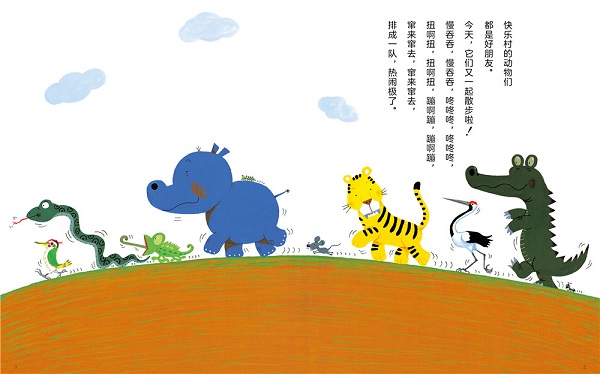 (1)这是一本关于分享主题的绘本,幽默的故事向孩子们讲述了朋友之间的分享故事。 (2)故事中一个“吃”的动作运用了丰富的动词,帮助处于语言爆发期的孩子积累丰富词汇。 (3)幽默的故事不仅仅展示了分享的快乐,更增加了孩子的日常认知——动物吃东西的特点;从1数到10;各种各样的形状认知……