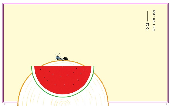 这是一本简单又快乐的绘本。 在快乐村里,动物们都是好朋友,它们经常一起玩、一起散步。一天,它们在散步的时候遇到了一个大大大西瓜。鳄鱼咔嚓咔嚓地把西瓜切成了10块,不过,大家会怎样“大口大口”地吃西瓜呢?西瓜作为夏日的象征,是孩子们*喜爱的食物。在这个故事中,孩子们可以发现,一百种动物,可能拥有一百种吃西瓜的方法,生动有趣的图画故事,让孩子们对夏日的来临充满期待感。 作为日本的知名绘本创作者,木曾秀夫以吃西瓜为故事背景,在故事中运用了大量的动词和拟声词来形容动物吃西瓜时各种各样的动作,来展现分享的快乐和每个动物的习性特点,如:蚂蚁叮了一大口——叮;毛毛虫咬了一大口——嗞;老鼠啃了一大口——唧;啄木鸟啄了一大口——笃……每一种动物吃西瓜的动作都不同,精妙绝伦的用词和一语双关,帮助处于语言爆发期的孩子积累丰富词汇,也让孩子在阅中充满兴趣,乐于与父母进行一问一答的亲子互动,是一本适合父母和孩子大声阅或者进行角色扮演阅的、充满欢乐的绘本。