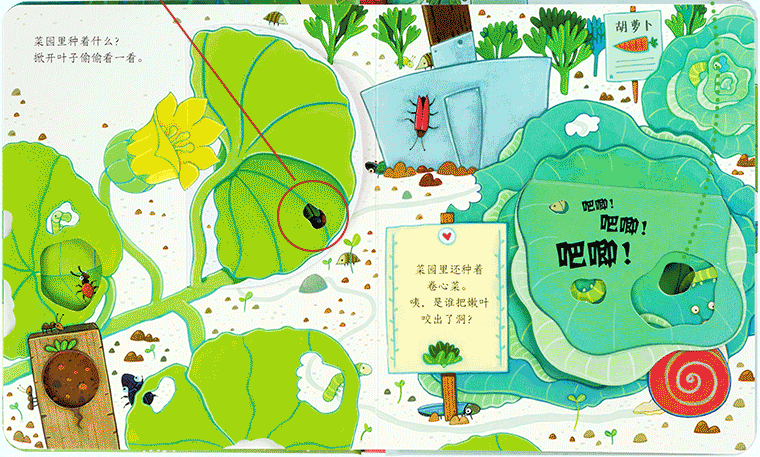 6.巧用镂空和翻翻工艺,营造捉迷藏的效果,让孩子始终保持新鲜感和探索欲;