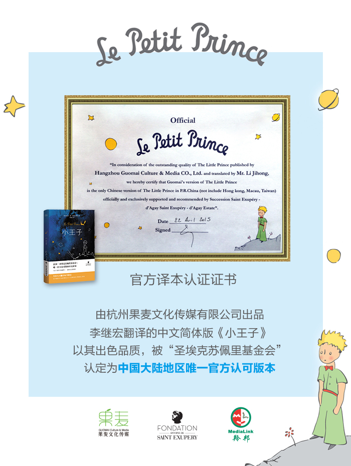 正因有了这些苦功和用心,这本《小王子》获得了作者官方组织——法国“圣埃克苏佩里基金会”的赞赏和支持,成为官方认可的简体中文译本。