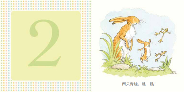大兔子带着小兔子到处玩耍,找找花园里有哪些好玩的事?有1朵蒲公英、2只青蛙、3只蝴蝶……小兔子跟着追追又跳跳,玩得好开心,最后,躺在大兔子怀里数星星,说晚安!