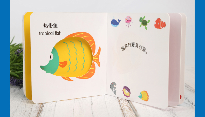 《猜猜我是谁·海洋生物》,适合0-3岁的婴儿,中英双语,精选适合宝宝认知的海洋生物,画风可爱有趣,还附有生动的短小说明文字。寓教于乐。