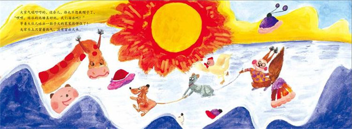 池塘冻住了,把好朋友小青蛙呀,小水蛇呀,小螃蟹呀,全冻住了,笨笨熊急急地想给池塘解冻。他想到了什么好法子,让大家欢呼雀跃?